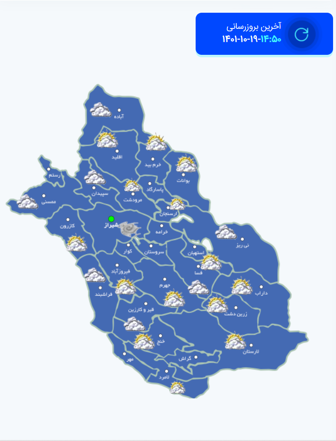نقشه هواشناسی بعدازطهر 19 دی فارس