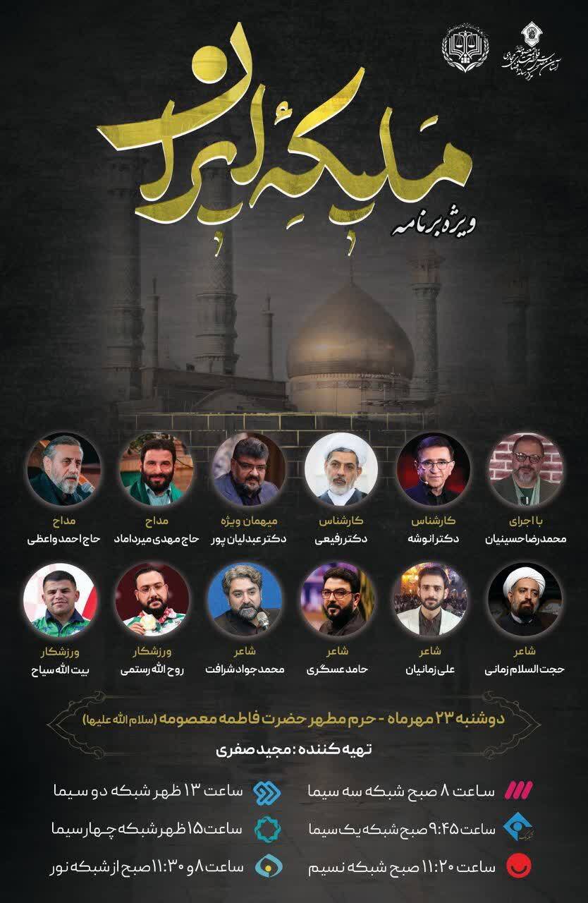 ویژه برنامه ملکه ایران یکی از مهمترین برنامههای است که در روز شهادت کریمه اهل بیت بروی آنتن شبکههای مختلف سیما خواهد رفت.