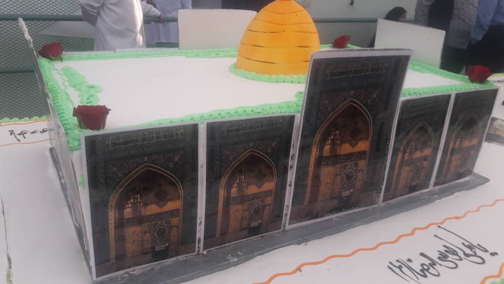 به گزارش تابناک رضوی، این آئین باشکوه که سابقه‌ای ۷ ساله دارد از سال ۹۲ آغاز شده و امسال هفتمین سال اجرای این طرح است، کیکی که به همت هیئت‌الرضا(ع) شهرستان آباده استان فارس پخته شده و از ساعت ۶ تا ۸ صبح سالروز میلاد فرخنده امام هشم(ع)، عالم آل محمد(ع)، حضرت علی بن موسی الرضا(ع) در پارکینگ شماره ۴ حرم مطهر رضوی واقع در بست شیخ طوسی و در میان زائران و مجاوران آن امام رئوف توزیع شد.