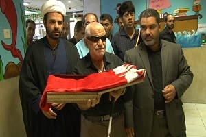 خادمان هیئت روشندلان اصفهان با به همراه داشتن پرچم بارگاه ملکوتی حضرت ابوالفضل (ع) از کودکان بیمارستان امام حسین اصفهان عیادت کردند.